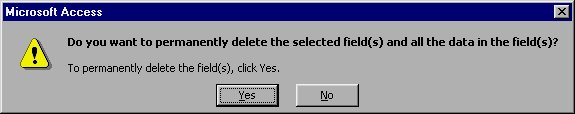 Note: If you delete a field by mistake, immediately use the Edit menu Undo option. If you make any other changes to your table structure, the deleted field (and its contents) cannot be recovered.