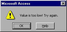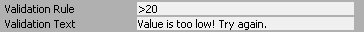 In this case, if you tried to enter a value lower than 20 in the field, then Access would display an error message dialog box, as shown in Figure 3-5.