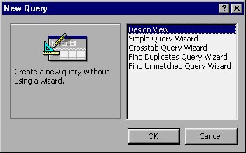 Notice that there are five options listed in the dialog box. The first option (Design View) is not really a query; it allows you to create a query from scratch. The purpose of the other four options is as follows: