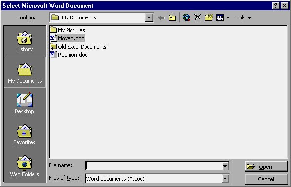 Figure 11-3 The Select Microsoft Word Document dialog box.
