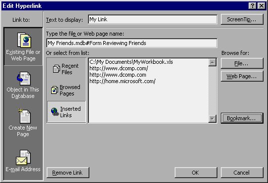 Before you can define a hyperlink in Access, you need to know the address you want to use for the hyperlink. Remember that hyperlinks are designed to be "clickable," and when someone clicks their mouse on one, they are taken to the target of the hyperlink. This target is nothing more than an address, which you learned about earlier in the chapter.