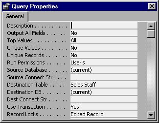 That's it. In a few short steps, you have created a query that will pull the desired information from one table and put it in another. You can run the query by selecting the query name in the Database window, and then clicking your mouse on the Open button. Shortly, Access will display a dialog box reminding you that your query will modify data in a table and asking you if you are sure you want to run it. Click your mouse on the Yes button, and Access runs the query.