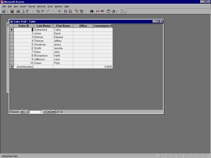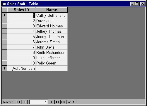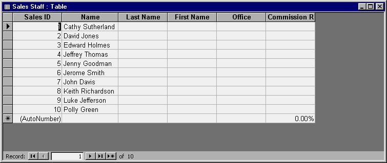 That's it. When you save the table, do so under the name Sales Staff. The table should appear in the Database window.