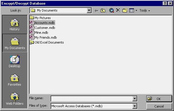 Note: Encryption, by itself, does not stop someone from opening a database in Access. Thus, encryption does little good if it is used without some other form of protection, such as a database password. Make sure you use encryption with some other form of protection, as well.