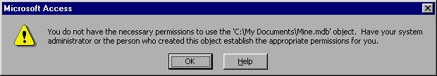 Once you have applied user-level security to a database, the database can only be opened in a very specific way. The database is still available from the Open dialog box, but it cannot be accessed from that dialog box. If you try to do so, Access displays an informational dialog box, as shown in Figure 16-17.