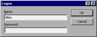 Instead, you must access the database using the shortcut the Wizard created on your desktop. When you double-click your mouse on the shortcut, Access is started and the proper Logon dialog box is displayed (see Figure 16-18). All you need to do is provide your name (if it is different than what is shown) and your password. You can then click your mouse on the OK button and access the database according to the permission levels granted you.
