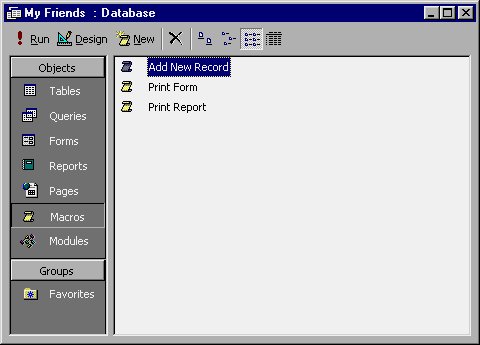 Figure 18-18 The Database window with the Macro tab selected.